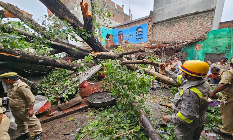 लखनऊ के कैसरबाग थाना क्षेत्र के तहत आने वाली मछली मंडी में मंगलवार दोपहर एक विशालकाय पीपल का पेड़ (Tree Fell) अचानक से नीचे गिर गया। इस दौरान पेड़ की चपेट में आने से एक घर की दीवार, टीन शेड और कुछ दुकानों दब गई, जिसके नीचे कई लोग दब गए। आनन-फानन में मामले की जानकारी पुलिस को दी गई। सूचना मिलते ही तत्काल कैसरबाग थाना प्रभारी पुलिस फोर्स के साथ मौके पर पहुंच गए।