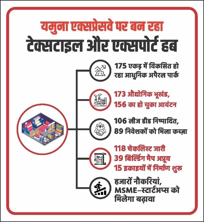 लखनऊ/ग्रेटर नोएडा। उत्तर प्रदेश को देश का प्रमुख टेक्सटाइल और अपैरल एक्सपोर्ट हब बनाने की दिशा में योगी सरकार लगातार ठोस कदम उठा रही है। इसी कड़ी में यमुना एक्सप्रेसवे औद्योगिक क्षेत्र में विकसित किया जा रहा अपैरल पार्क (Apparel Park) राज्य के औद्योगिक परिदृश्य में मील का पत्थर साबित हो रहा है। यह परियोजना न केवल निवेश को आकर्षित कर रही है, बल्कि युवाओं के लिए बड़े पैमाने पर रोजगार के अवसर भी सृजित कर रही है। प्राधिकरण द्वारा यमुना एक्सप्रेसवे औद्योगिक क्षेत्र में 175 एकड़ भूमि पर अपैरल पार्क विकसित किया जा रहा है। इसमें विभिन्न आकार के कुल 173 औद्योगिक भूखंड नियोजित किए गए हैं, जिन्हें अपैरल एवं टेक्सटाइल क्षेत्र से जुड़ी इकाइयों को आवंटित किया जा रहा है।