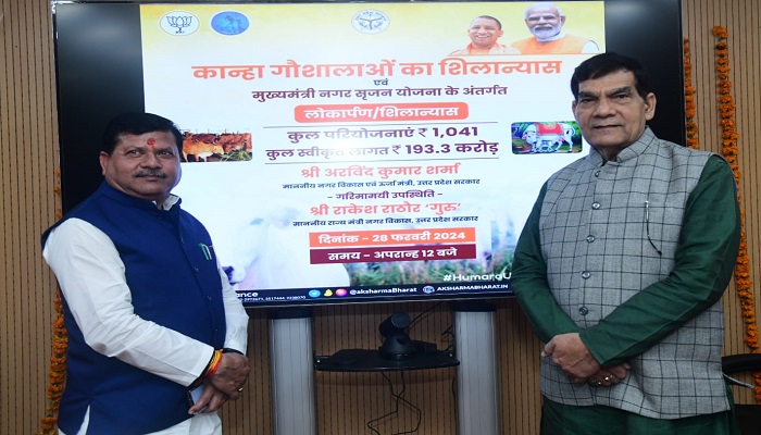 लखनऊ। प्रदेश के नगर विकास एवं ऊर्जा मंत्री एके शर्मा (AK Sharma) ने मुख्यमंत्री नगर सृजन योजना के अंतर्गत तथा कान्हा गौशालाओं के निर्माण संबंधी 193.34 करोड रुपये़ की लागत के 1041 कार्यों का वर्चुअल लोकार्पण एवं शिलान्यास किया। लोकार्पण एवं शिलान्यास कार्यक्रम के प्रथम चरण में 22 जिलों की 60 निकायों के अंतर्गत 55 निकायों में 92.02 करोड़ रुपये की लागत से 558 कार्यों का लोकार्पण तथा 60 निकायों में 101.32 करोड़ रुपये की लागत से 483 कार्यों का शिलान्यास किया गया। इसमें कान्हा गौशालाओं की 16 परियोजनाएं, सड़क, नाली, फुटपाथ आदि के निर्माण की 786 परियोजनाएं, जल निकासी के लिए नाली-नाले के निर्माण की 88 परियोजनाएं तथा निकायों में विद्यालयों और ऑगनबाड़ी केन्द्रों आदि की 118 परियोजनाएं शामिल हैं। इन सभी परियोजनाओं के धरातल पर आने से 60 निकायों के लाखों नागरिकों को बेहतर सुविधायें मिलेंगी। साथ ही मंत्री शर्मा (AK Sharma) ने मेरठ नगर निगम द्वारा निर्मित ‘‘जनसुविधा ऐप’’ का भी उद्घाटन किया। इस ऐप में लोग अपनी शिकायत दर्ज कर त्वरित गति से निस्तारण करा सकेंगे।