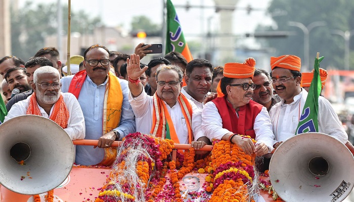चारबाग रेलवे स्टेशन से पार्टी पदाधिकारी, जनप्रतिनिधि, राज्य सरकार के मंत्रीगण व हजारों कार्यकर्ता नाचते-गाते ढोल-नगाड़ों के साथ गगन भेदी नारे लगाते हुए पार्टी कार्यालय की ओर बढे़। नवनियुक्त प्रदेश अध्यक्ष भूपेन्द्र सिंह निवर्तमान प्रदेश अध्यक्ष स्वतंत्र देव सिंह, उपमुख्यमंत्री केशव प्रसाद मौर्य व ब्रजेश पाठक, केन्द्रीय मंत्री व पूर्व प्रदेश अध्यक्ष डा. महेन्द्र नाथ पाण्डेय, संव बालियान, केन्द्रीय वित्त राज्यमंत्री पंकज चौधरी व प्रदेश सरकार में राज्यमंत्री स्वतंत्र प्रभार दयाशंकर सिंह, प्रदेश उपाध्यक्ष संतोष सिंह, प्रदेश महामंत्री अमर पाल मौर्य, अनूप गुप्ता, प्रदेश मंत्री शंकर लोधी के साथ पार्टी द्वारा तैयार किये गए रथ पर सवार होकर पार्टी कार्यकर्ताओं का स्वागत व अभिनंदन स्वीकार करते रहे।