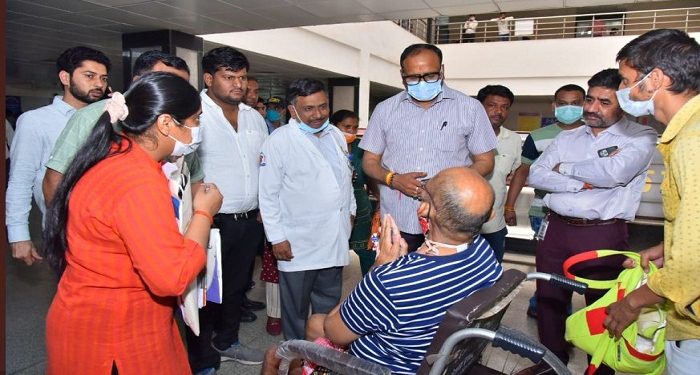 उप मुख्यमंत्री पाठक अपने चेहरे पर मास्क लगाए थे। उनके साथ न तो कोई सुरक्षा कर्मी था और न ही कोई प्रोटोकॉल। अचानक ट्रामा सेन्टर पहुंचे और तीमारदारों के साथ ही वह भी कतार में खड़े हो गये। कतार में खड़े होकर उन्होंने पर्चा कटने से लेकर दवा बंटने तक की सारी व्यवस्थाओं को करीब से देखा और परखा।
