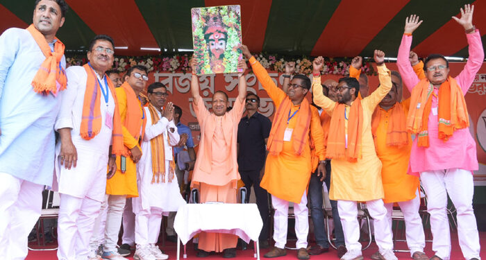 अपना आशीर्वाद देना है। इसलिए अब मैं जो कहूंगा, आप लोग उसका जवाब दीजिएगा। फिर सीएम (CM Yogi Adityanath) ने कहा, ऑन्धकार हटबे (अंधकार हटेगा)। जनता ने उत्तर दिया- सूरोज उठेबे, कोमोल खिलबे (सूरज उगेगा-कमल खिलेगा)। मुख्यमंत्री ने आगे कहा, पलटानो दोरकार (परिवर्तन की जरूरत है), जनता ने उत्तर दिया- चाई बीजेपी सोरकार (चाहिए भाजपा सरकार)। सीएम ने जब “आमार सोनार बांग्ला, टीएमसी मुक्तो बांग्ला (हमारा सोने जैसा बंगाल, टीएमसी मुक्त बंगाल)” कहा तो उपस्थित जनसमूह ने भी दोनों हाथ उठाकर इसे कई बार दोहराया।
