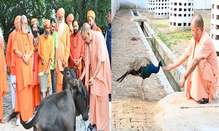 सीएम योगी ने की गोसेवा, भवानी-भोलू को दुलारा, पुंज को भी खिलाया गुड़