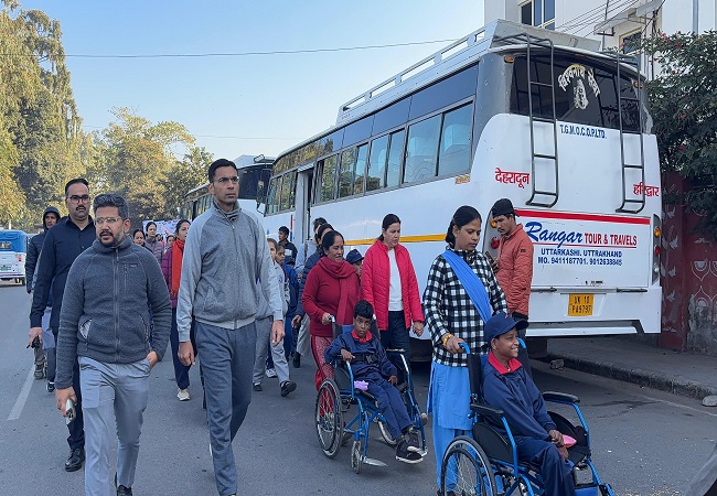 देहरादून: विश्व दिव्यांग सप्ताह के अवसर पर रफेल होम संस्था द्वारा दिव्यांगजनों के प्रति जागरूकता एवं संवेदनशीलता बढ़ाने हेतु एक जागरूकता ‘‘वॉक फॉर डिस्एबिलिटी’’ का आयोजन किया गया।‘‘वॉक फॉर डिस्एबिलिटी’’ का शुभारंभ जिलाधिकारी सविन बंसल (Savin Bansal) एवं मुख्य विकास अधिकारी अभिनव शाह ने दून लाइब्रेरी चौक से गुब्बारे उड़ाकर किया। इस आयोजन में लगभग 300 बौद्धिक दिव्यांगजन, बच्चे शामिल हुए।