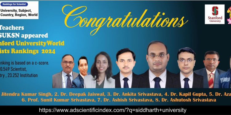 सिद्धार्थनगर। सिद्धार्थ विश्वविद्यालय कपिलवस्तु सिद्धार्थ नगर के विज्ञान संकाय तथा व्यवसाय एवं प्रबंधन संकाय के आठ शिक्षकों को स्टैंड फोर्ड विश्वविद्यालय द्वारा कराए गए वर्ल्ड साइंटिस्ट रैंकिंग 2024 में स्थान प्राप्त हुआ है । इस क्रम में डॉक्टर जितेंद्र कुमार सिंह गणित विभाग के संयुक्त आचार्य को इंजीनियरिंग एवं टेक्नोलॉजी के क्षेत्र में तथा डॉक्टर अंकिता श्रीवास्तव वनस्पति विज्ञान विभाग, डॉक्टर कपिल गुप्ता बायोटेक्नोलॉजी विभाग, डॉक्टर आजाद कुमार रसायन विज्ञान विभाग, प्रोफेसर सुनील कुमार श्रीवास्तव रसायन विज्ञान विभाग, डॉ आशीष श्रीवास्तव प्राणी विज्ञान विभाग, डॉ आशुतोष श्रीवास्तव सयुक्त आचार्य प्राणी विज्ञान विभाग को नेचुरल साइंस के क्षेत्र में तथा व्यवसाय एवं प्रबंधन विभाग के डॉक्टर दीपक जायसवाल को बिजनेस एंड मैनेजमेंट को शोध कार्य में विशेष उपलब्धि हासिल करने के कारण यह रैंकिंग प्राप्त हुई है। ग्लोबल रैंकिंग में 219 देश के 23252 संस्थाओं के 179549 वैज्ञानिकों को सम्मिलित किया गया है। सिद्धार्थ विश्वविद्यालय के विज्ञान संकाय एवं प्रबंधन संकाय के शिक्षकों की इस उपलब्धि पर कुलपति प्रोफेसर हरि बहादुर श्रीवास्तव ने कहा कि सिध्दार्थ विश्वविद्यालय विशेष रूप से विज्ञान के क्षेत्र में कक्षा अध्यापन से लेकर शोध कार्यों की दृष्टि से यह अनुकरणीय उपलब्धि है। विश्वविद्यालय अपने अल्प समय में ही बहुत तेज गति से प्रगति कर रहा है। इस उपलब्धि से ही स्पष्ट है की इन शिक्षकों का शैक्षणिक एवम शोध अनुसन्धान का कार्य अंतरराष्ट्रीय स्तर पर मानक के अनुरूप स्वीकार किया गया है। उनके इस उपलब्धि से व्यक्तिगत रूप से शिक्षकों को तो लाभ होगा साथ ही यहां के विद्यार्थियों एवं शोधार्थियों तथा आसपास के क्षेत्र में विज्ञान और शोध के प्रति एक नई दृष्टि उत्पन्न करने में सहयोगी साबित होगा। यहां पर दो वर्ष से भी काम की अल्प अवधि में विज्ञान संकाय बहुत तेज गति से कक्षा अध्यापन के साथ-साथ शोध के क्षेत्र में तीव्र विकास के पथ पर अग्रसर है । इन शिक्षक वैज्ञानिकों का कार्य प्रशंसनीय है। भविष्य में ऐसे प्रतिष्ठित शिक्षकों का अत्यधिक लाभ यहां के पढ़ने वाले विद्यार्थियों एवं आसपास के महाविद्यालयों को तथा शोध कार्य करने वाले शोधार्थियों को निरंतर प्राप्त होता रहेगा। इस अवसर पर कुल सचिव डॉ अमरेंद्र कुमार सिंह सहित संकाय अध्यक्षों, विभाग अध्यक्षों, सभी शिक्षकों ने प्रसन्नता व्यक्त की है।