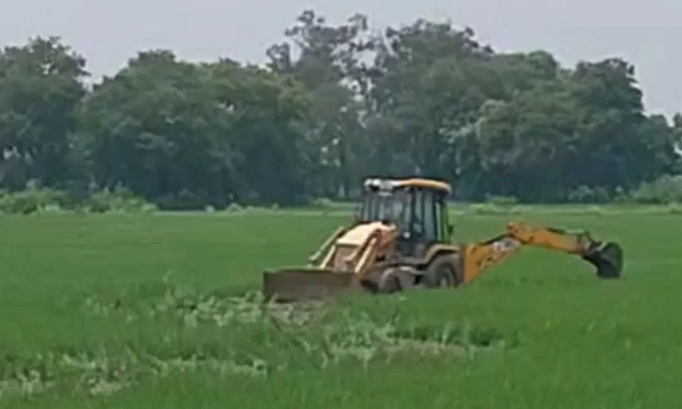 खड़ी फसल को जेसीबी से रौंदा, किसानों ने किया एक्सप्रेसवे निर्माण का किया विरोध
