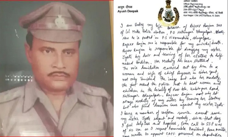 सुसाइड नोट के मुताबिक, बहन से थानेदार द्वारा दुर्व्यवहार से आहत आईटीबीपी के कमांडेंट ने खुदकुशी कर ली। सुसाइड नोट में मौत का जिम्मेदार थाना अध्यक्ष को ठहराते हुए पूरे घटनाक्रम को बयां कर दिया। सुसाइड नोट में लिखा है- मैं अपनी जिंदगी खत्म कर रहा हूं। क्योंकि भागलपुर के ललमटिया थानेदार राजीव रंजन जो वर्तमान में बांका के विक्रमशिला थाने में पोस्टेड है, वह मेरी मौत का जिम्मेदार है। राजीव रंजन मेरी बहन का बाल पड़कर घसीटने और उसके कपड़े फाड़ कर अर्धनग्न करने के लिए जिम्मेदार है। उसके द्वारा एक महिला और बिहार सरकार के मुख्य अभियंता की पत्नी के साथ किए गए घिनौने अपमान ने ना केवल पुलिस की छवि धूमिल की। बल्कि वर्दी की मर्यादा को भी भंग किया।