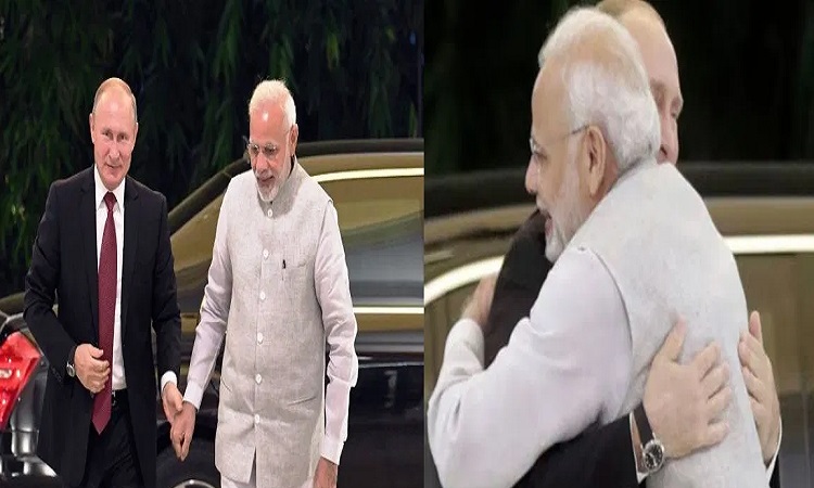 रूस के राष्ट्रपति व्लादिमीर पुतिन (Putin) गुरुवार देर शाम मॉस्को से दिल्ली स्थित एयरपोर्ट पहुंच गए। यहां प्रधानमंत्री नरेंद्र मोदी (PM Modi) ने पुतिन का स्वागत किया है। दोनों नेताओं ने एक दूसरे को गले लगाया। इसके बाद दोनों नेता एक ही गाड़ी में बैठकर पीएम आवास के लिए रवाना हो गए। इस दौरान एयरपोर्ट की सुरक्षा व्यवस्था बेहद कड़ी रही। राष्ट्रपति पुतिन भारत के 2 दिन के राजकीय दौरे पर हैं। वे 5 दिसंबर को दिल्ली में प्रधानमंत्री नरेंद्र मोदी के साथ 23वीं भारत-रूस वार्षिक शिखर बैठक करेंगे।