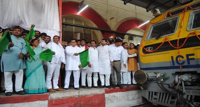 प्रयागराज। यात्रियों को बेहतर सुविधाएं उपलब्ध कराने हेतु रविवार को इटावा जंक्शन पर इटावा से फफूंद के मध्य नई मेमू (MEMU) स्पेशल गाड़ी का सांसद इटावा प्रो. (डॉ) राम शंकर कठेरिया ने हरी झंडी दिखा कर शुभारम्भ किया। इसके साथ इटावा जंक्शन स्टेशन पर नवनिर्मित पैदल उपरिगामी पुल का सांसद ने लोकार्पण किया।