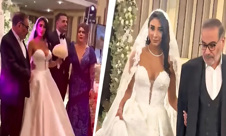 सोशल मीडिया पर वायरल हो रहे एक पुराने वीडियो में, ईरान की एक्सपीडिएंसी काउंसिल के सदस्य और नौसेना के एडमिरल अली शामखानी को अपनी बेटी को तेहरान के लग्जरी एस्पिनास पैलेस होटल में विवाह स्थल तक ले जाते हुए देखा जा सकता है। वीडियो में दुल्हन फातेमा एक स्ट्रैपलेस गाउन पहने नजर आती हैं।