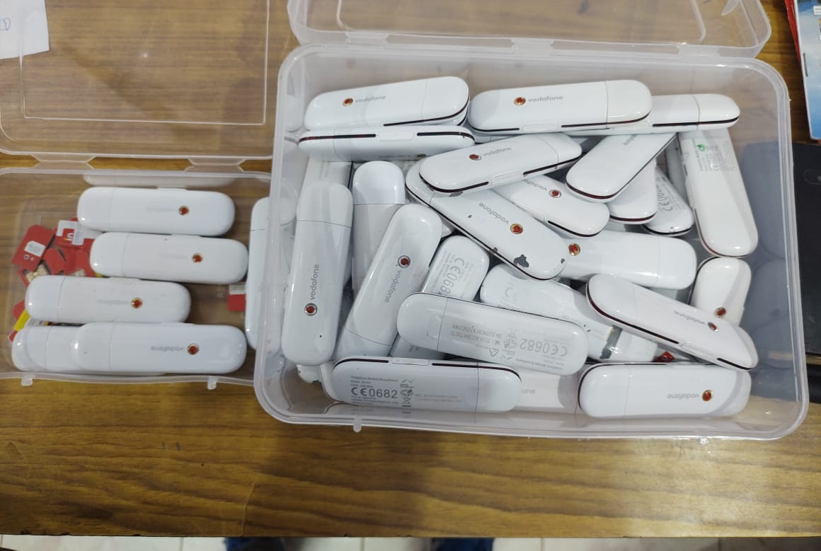 उन्होंने बताया कि गिरफ्तार आरोपियों के कब्जे से 2160 रूपये नगद, एक सिम बाक्स (100 नेट शेयर स्लाट) मोबाइल फोन (विभिन्न कम्पनियों के), 69 नेट सेटर, 24 सिम कार्ड (एयरटेल और वीआई), दो लैपटाप, एक प्रिन्टर, राउटर एटीएम कार्ड, दो मोबाइल। टूलकिट फर्जी आधार कार्ड और मतदाता पहचान पत्र आदि बरामद किए।