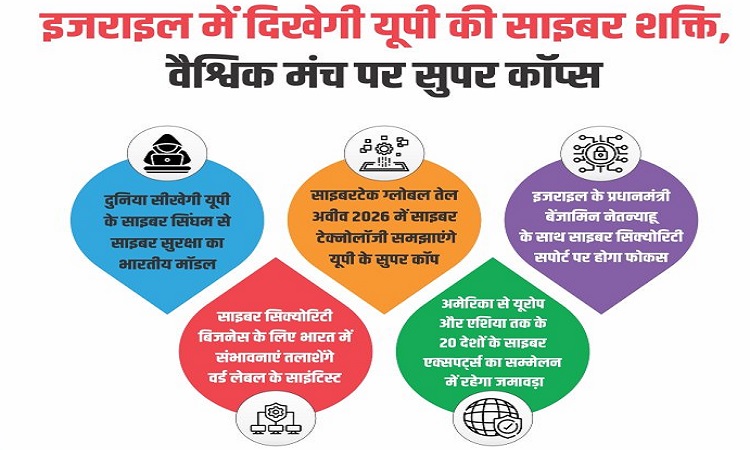 लखनऊ। दुनिया के सबसे प्रतिष्ठित साइबर सुरक्षा मंचों में शुमार ‘साइबरटेक ग्लोबल तेल अवीव-2026’ में इस बार भारत और विशेष तौर पर उत्तर प्रदेश की साइबर (Cyber) ताकत पूरी दुनिया के सामने होगी। 26 से 28 जनवरी 2026 तक तेल अवीव, इज़राइल (Israel) में आयोजित होने जा रहे इस अंतरराष्ट्रीय सम्मेलन में यूपी के साइबर सिंघम वैश्विक मंच पर भारत की साइबर सुरक्षा क्षमता, तकनीक व अनुभव साझा करेंगे।